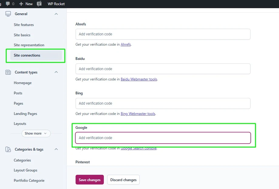 5. Navigate to Yoast SEO → Settings → Site connections.